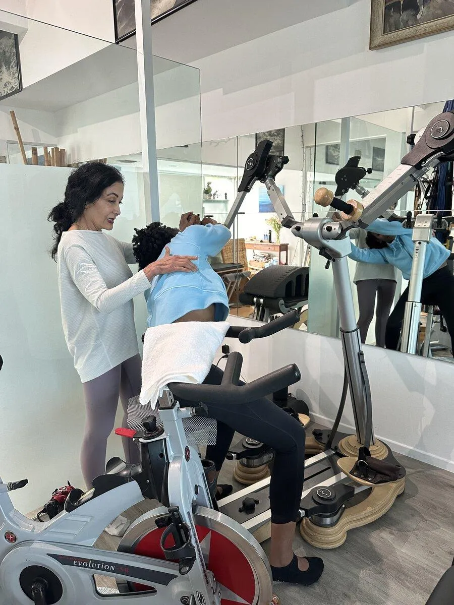 Our Malibu studio offers a serene, private environment equipped with state-of-the-art Gyrotonic and cardio equipment. The space is designed to provide both functionality and tranquility, allowing clients to focus entirely on their practice.